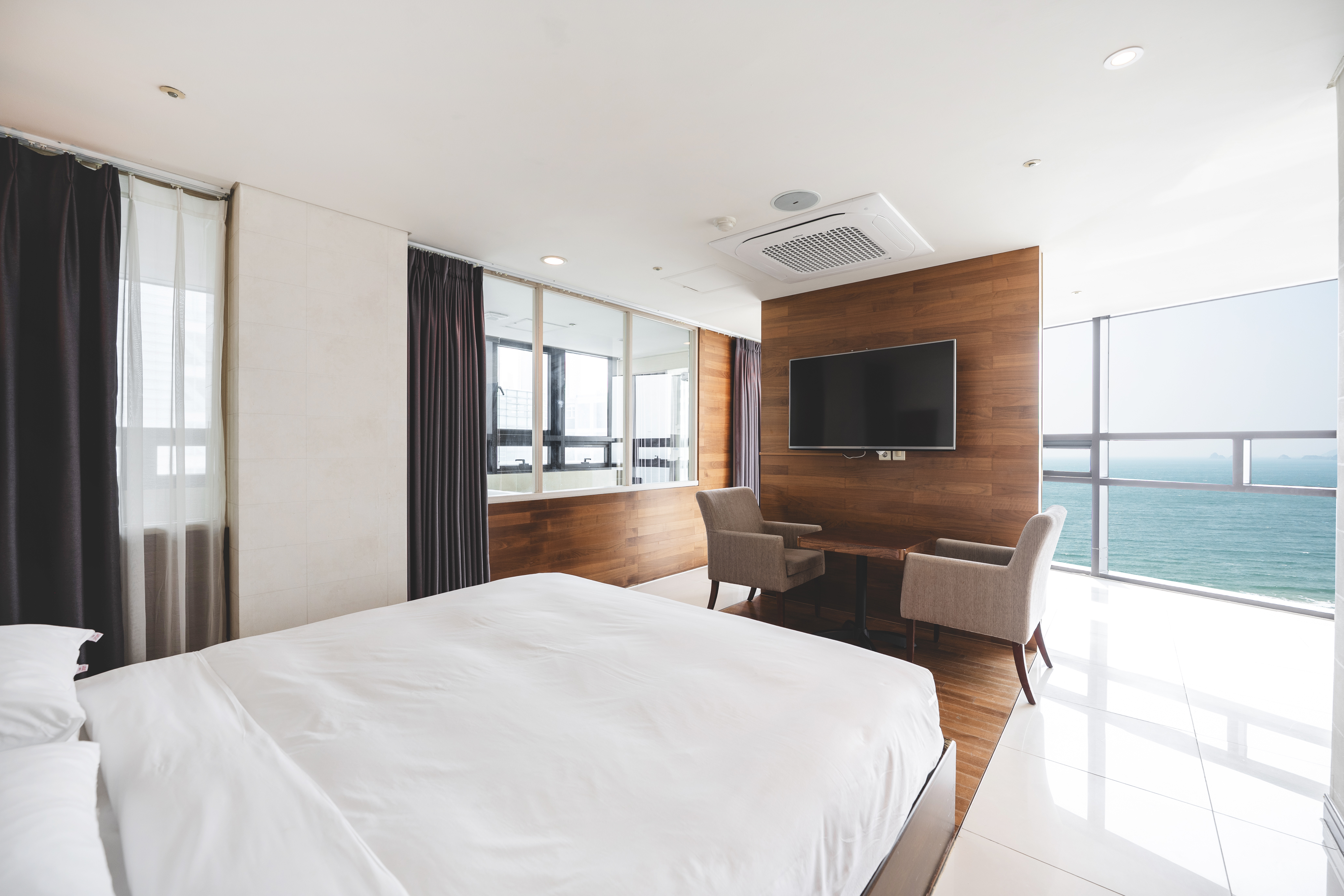 해운대 바다가 한눈에 내려다보이는 탁 트인 전망과 세련된 인테리어가 돋보이는 이 객실은 중요한 순간을 더욱 특별하게 만들어 줄 완벽한 선택입니다. |